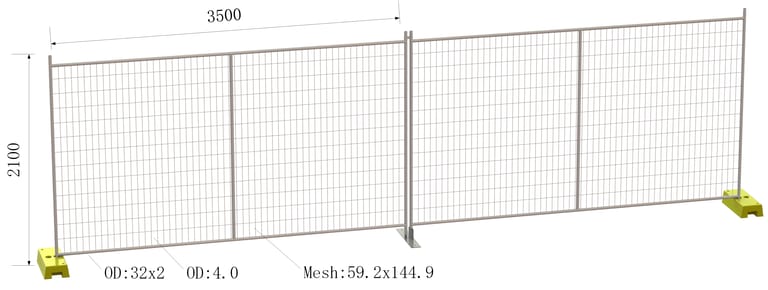 2.1m × 3.5m temporary fence panels push coverage and stability to the max for temporary systems. Using the same robust OD 32 × 2.00 mm frame and 4.0 mm wire in a 60 × 150 mm mesh, the MAX 3.5 spec is purpose-built for maximum security and stability over long perimeters.