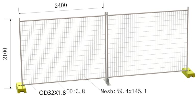 OD32×1.80 mm temporary fence panels (China Common Standard) are built for medium-security sites that need a tough frame, durable mesh, and long service life—without the premium price of heavy-duty systems. With a 32 mm outer-diameter frame tube and 1.80 mm wall, paired with 3.8 mm wire in a 60 × 150 mm mesh, these panels deliver dependable performance for construction sites and public events.